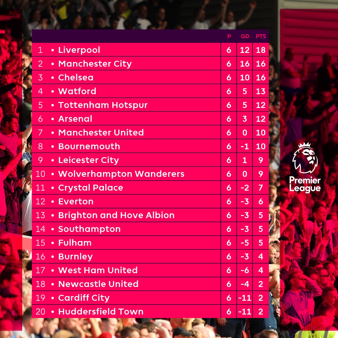 Klasemen sementara dari Pertandingan Minggu ke 6
